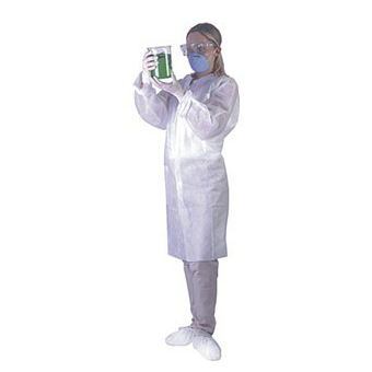 Polypropylene Lab Coat - Pharma-Coat™ PCOAT797 has a snap front closure for ultimate comfort and convenience. Breathable and comfortable spunbond material protects from dust and grime. Velcro® closure remains shut and allows additional flexibility in fit and feel. Available in sizes small to 4XL.