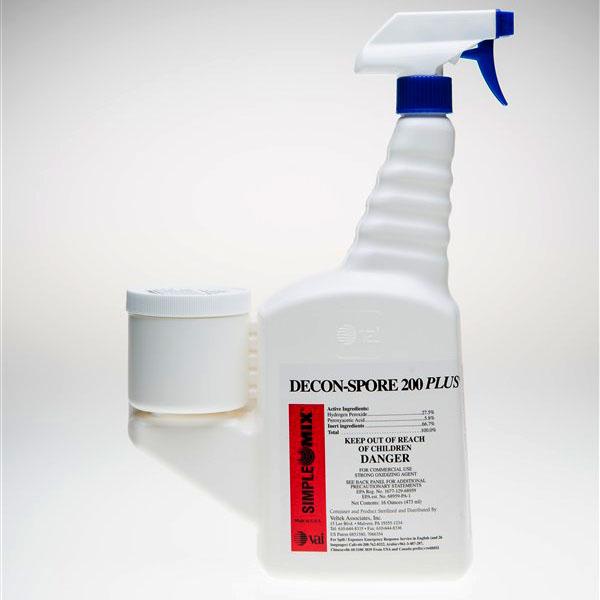 - DECON-SPORE 200 Plus disinfects as it cleans in one operation. DECON-SPORE 200 Plus can be used to disinfect floors, walls and other hard non-porous surfaces