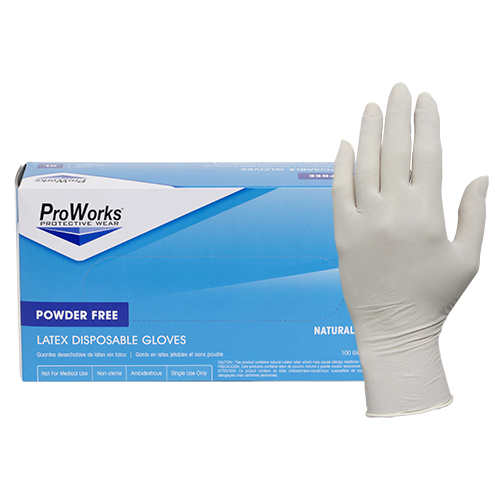 ProWorks Natural Latex Industrial Disposable Gloves, 5 mil (HOS-GL-L105). These gloves are excellent for industrial use / general-purpose cleaning and protection. They are sold by the case - packaged 100/box, 10 boxes/case, 1000 total gloves per case.