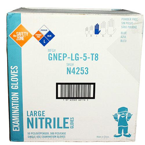 The Safety Zone Powder Free Blue Nitrile Gloves - GNEP-SIZE-5-T8 - Premium Grade, Extended Length - Nitrile disposable gloves. 100% Latex free and powder free, ambidextrous. 50 gloves/box, 10 boxes/case. Features:
