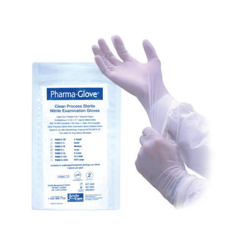 Pharma-Glove™ is an ambidextrous glove that is latex-free, powder-free, has a 12” cuff and is manufactured specifically for the pharmacy. Pharma-Gloves™ are validated sterile and individually pair packaged with paperless packaging. They are available in sizes XS-3XL.