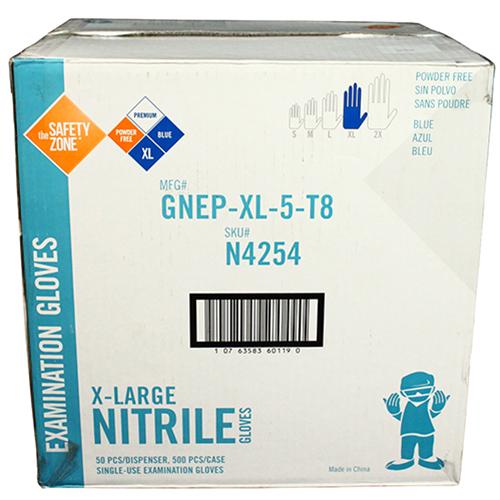 The Safety Zone Powder Free Blue Nitrile Gloves - GNEP-SIZE-5-T8 - Premium Grade, Extended Length - Nitrile disposable gloves. 100% Latex free and powder free, ambidextrous. 50 gloves/box, 10 boxes/case. Features: