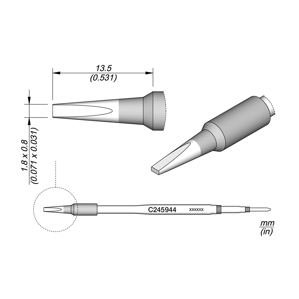 JBC C245-944: Cartridge - Chisel - 1.8 MM x 0.8 MM Cartridge for T245 handpiece