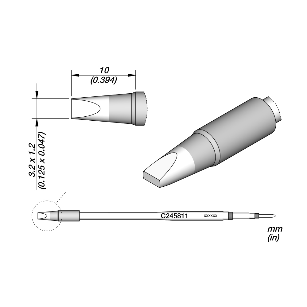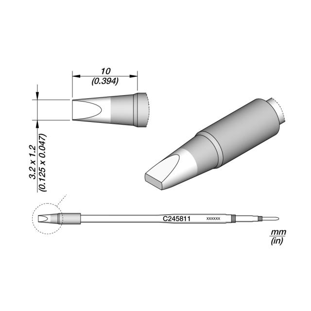 JBC C245-811: Cartridge - Chisel - 3.2 MM x 1.2 MM Cartridge for T245 handpiece These cartridges are 20mm longer than normal cartridges for easier access to difficult-to-reach joints.