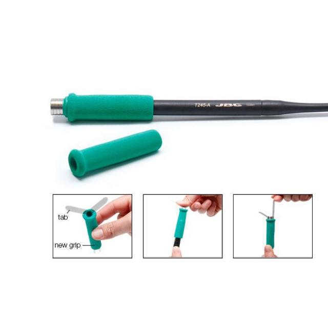 - This soldering iron handle for general purposes features a soft foam grip which provides thermal insulation.