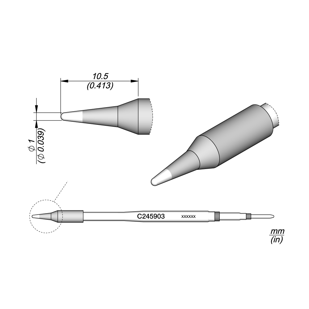 JBC C245-903: Cartridge - Conical - 1.0 MM Cartridge for T245 handpiece