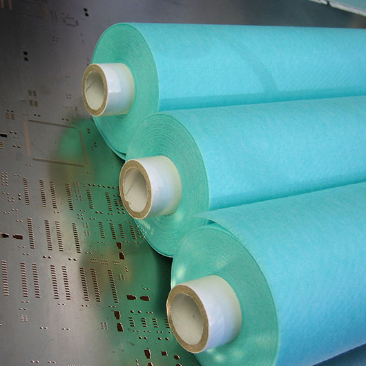 Patent pending NOVATECHTM 7000 fabric used in the GREEN MONSTERTM MPM stencil wiping rolls product line is like no other product and is comprised of a synergistic blend of virgin rayon and polyester fibers bonded with a tough proprietary polymeric resin. Magnification shows the fabric to have a fiber structure with many open voids for aggressive collection of solder paste and adhesives on a “micro” level. This aggressive fabric has the porosity required to maximize the use of vacuum systems. Unlike other smooth paper-like products that simply push and smear and don’t allow adequate air to pass through. The anti-static properties decrease the chance of a static discharge onto solder traces and components – especially when printing the other side of loaded boards. These anti-static properties also decrease the static attraction of dust and other contaminants.