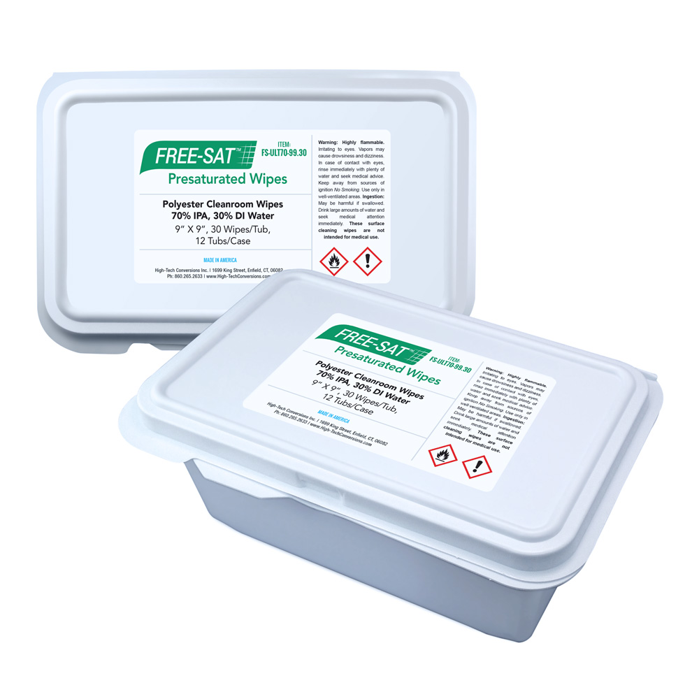 FREE-SAT® Ultimate 70 Presaturated Wipes 9″ x 9″, 70% IPA / 30% DI Water, 40 Wipes/Tub
