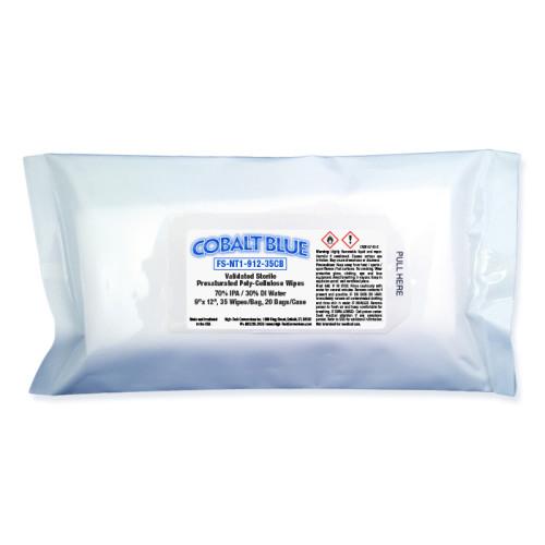 Cobalt Blue 9" x 12" Sterile Presaturated Wipes, Poly-cellulose, 70% IPA / 30% DI Water