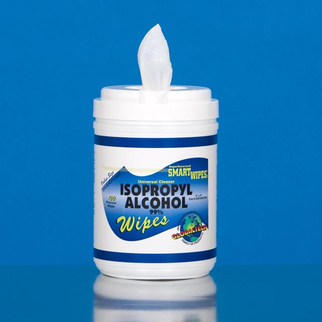 SuperSaturated SmartWipes Industrial 99% Isopropyl Alcohol Presaturated Wipes, Hydroknit, 6" x 9" (10052IPA) These wipes contain 99% IPA, which is a non-aggressive universal cleaner, degreaser and disinfectant. Our industrial grade wipe material offers the right balance of strength and absorptivity making it suitable for a wide range of industrial applications. Wipes won’t scratch soft surfaces; yet have sufficiently active texture to clean surfaces. Removes most types of inks, pastes, fluxes, light oils and other contaminants associated with assembly, machining, soldering and printing. Ideal for use in surface preparation prior to manufacturing or assembly processes. Comprised of Hydroknit, a patented cellulose and polypropylene nonwoven fabric. Our industrial grade wipe material offers the right balance of strength and absorptivity making it suitable for a wide range of industrial applications. Wipes won’t scratch soft surfaces; yet have sufficiently active texture to clean surfaces. Removes most types of inks, pastes, fluxes, light oils and other contaminates associated with assembly, machining, soldering and printing. Ideal for use in surface preparation prior to manufacturing or assembly processes. Comprised of Hydroknit, a patented cellulose and polypropylene nonwoven fabric. GlobalTech Chemicals deliver a complete line of innovative and unique formulations for use in electronic assembly manufacturing and precision cleaning applications. These environmentally responsible solvents provide safer, better-performing, higher-quality and more eco-sustainable products, packaged in convenient delivery systems for optimum value and utility. SuperSaturated SmartWipes were developed to increase process control and standardization, improve safety, reduce stringent VOC emissions, enhance convenience and, due to their exceptional solvent control, decrease solvent usage up to 50 percent. Packaged in recyclable, reusable canisters or earth-friendly vacuum-sealed foil bags.